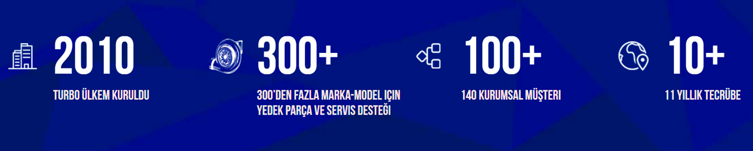 Turbo Ülkem Turbo Şarjların garantili hizmetini vermek için kurulmuştur. Parkurumuzdaki son teknoloji test makinelerimizle Turbo şarjlarınıza sıfır hata ile bakım ve onarım yapmaktayız.Turbo Şarj ve yedek parçada Orijinal markaların yanında TURBO ÜLKEM markalı ürünlerimizi de güvenle üreterek pazarlamaktayız. TURBO ULKEM kendi ürünleri ile birlikte yurtdışından GARRETT,K.K.K ,BORG WARNER, SCHWITZER, HOLSET, MITSUBISHI,IHI, TURBO SMART marka ürünler ithal edip iç piyasaya sunmaktadır. Geçmişten günümüze müşteri memnuniyetini ön planda tutarak faaliyetlerini sürdüren firmamız;